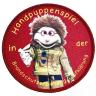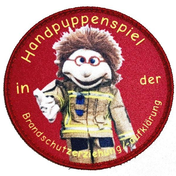 Rundes Patch Handpuppenspiel in der Brandschutzerziehung / -aufklärung mit Brandschutzerzieher Peterchen.