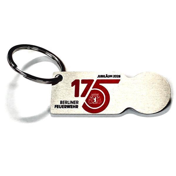 Robust aus Metall mit Schlüsselring für das Schlüsselbund, ist auch zum Jubiläum der Berliner Feuerwehr immer mit dabei.