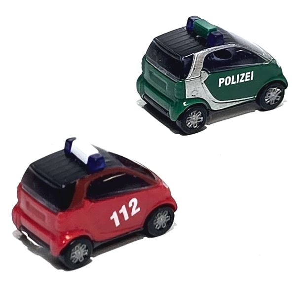 2 Kunststoffmodelle Smart for two Polizei und Feuerwehr für Spur N in Klarsichtbox