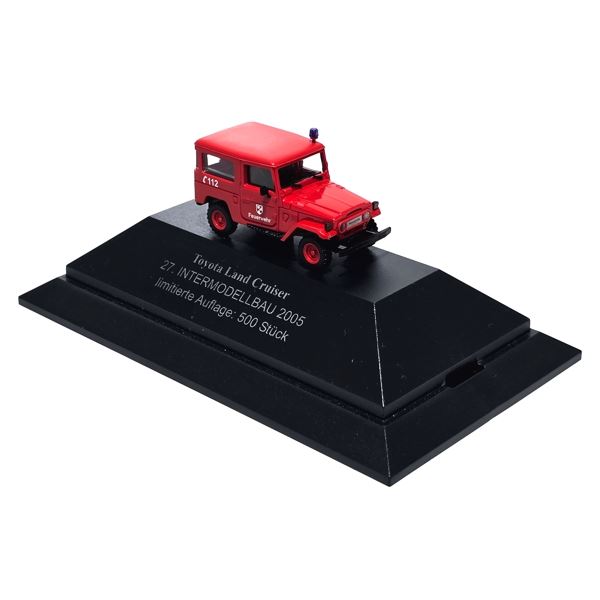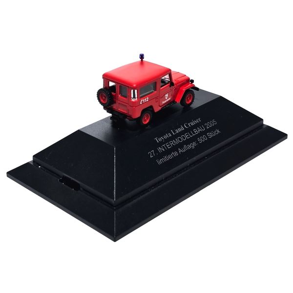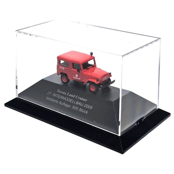 Sondermodell in Klarsichtbox des Toyota Land Cruiser als Feuerwehr Geländewagen.