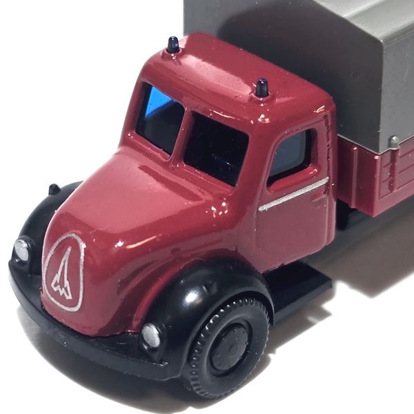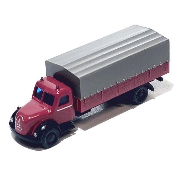 Kunststoffmodell des Magirus Rundhauber Feuerwehr LKW mit Pritsche und Plane für Spur N.