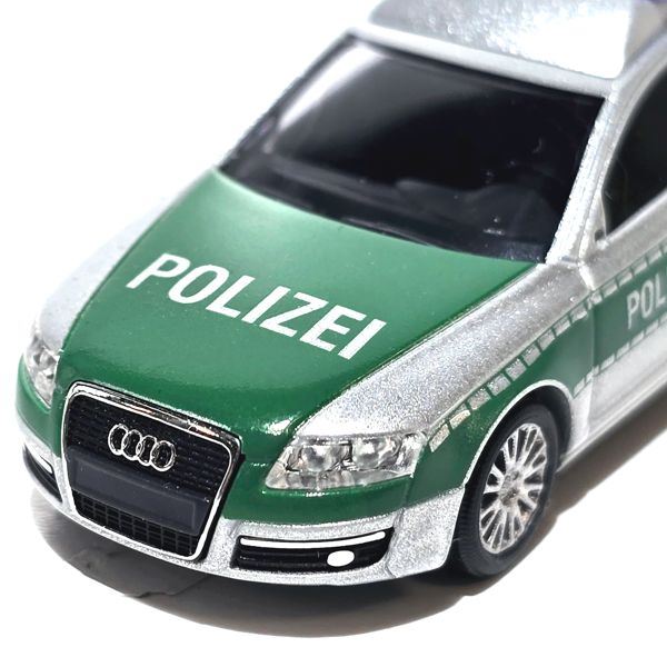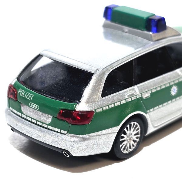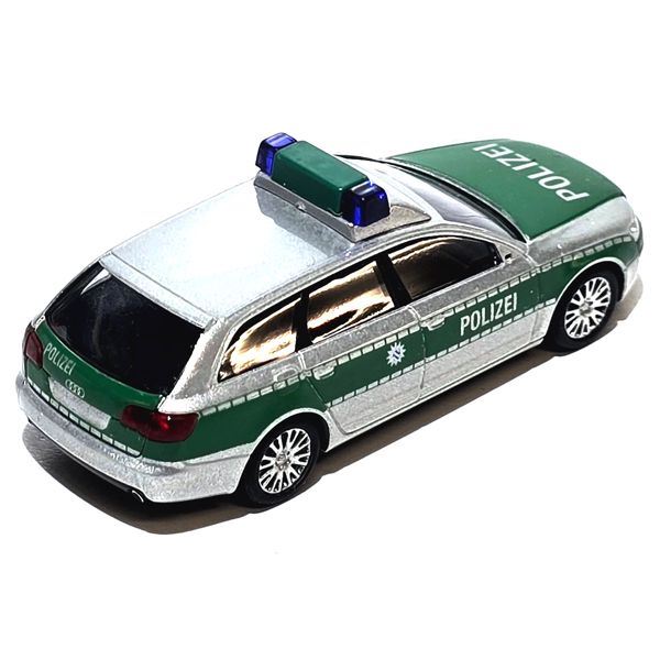 Modellauto des Audi A6 Avant als Einsatzfahrzeug der Bayrischen Polizei in grün.