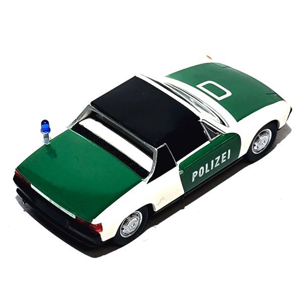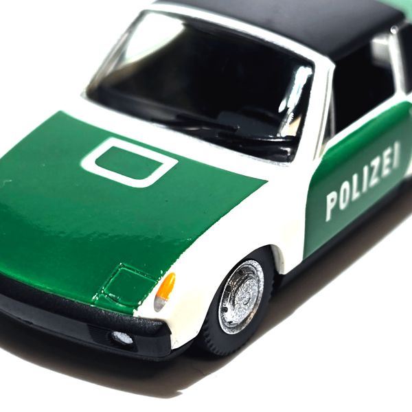 Modellauto Polizei Porsche 914 in grüner Ausführung.